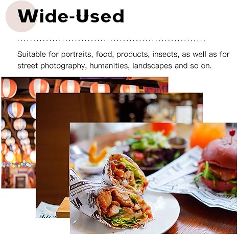 - F1.4 Large Aperture: The F1.4 aperture allows more light, increasing brightness and reducing noise, especially in low-light conditions. Enjoy stunning bokeh effects with the wide-open aperture